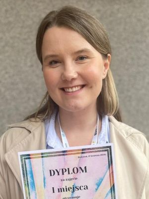Za swoją prezentację uzyskała 1. miejsce w sesji, w której wystąpiła, a dodatkowo zdobyła nagrodę specjalną za uzyskanie maksymalnej liczny punktów od jury spośród wszystkich prelegentów we wszystkich sesjach - wystąpienie Pani Aleksandry zostały tym samym ocenione jako najlepsze podczas całej konferencji. Gratulujemy!